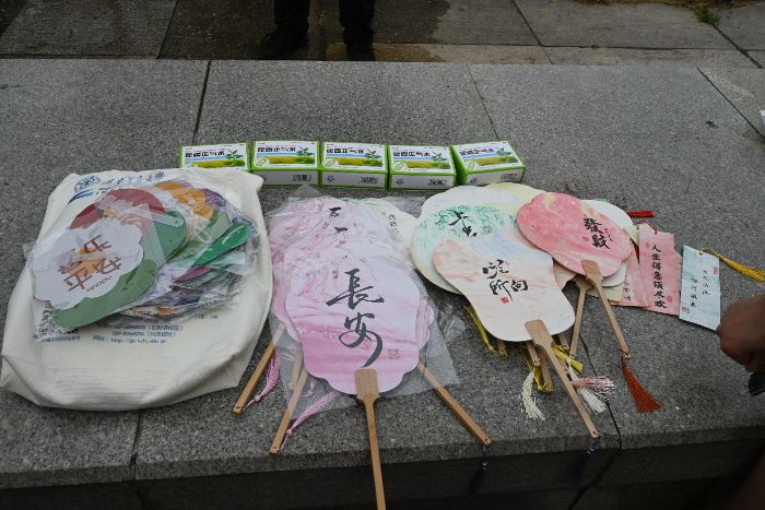 實踐尾聲,團隊特別策劃了一場小型的“致敬勞動者”現場活動。同學們將自制的非遺文創扇子、環保袋等禮物贈送給景區工作人員,并邀請游客一起寫下感謝卡,表達對維護人員的敬意。