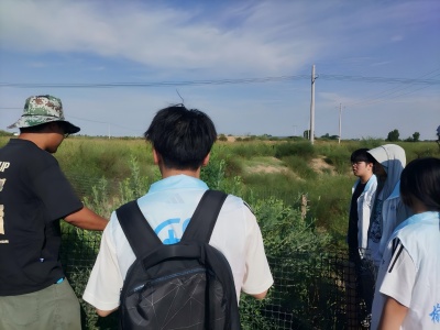 翌日(8月19日),實踐隊跟隨我校研究生學長的腳步,深入河南鄉沙地地下水勘測基地開展調研。廣袤沙地中,學長們耐心講解地下水勘測技術與沙地植被恢復措施。沙蒿、沙柳、沙荊……這些頑強扎根于沙土中的植被,不僅是沙漠中的“綠色衛士”,更承載著水資源管理與生態治理的科技內涵。同學們一邊記錄一邊思考,在實地觸摸與學術交流中深化了對“水—生態—資源”系統關系的理解。