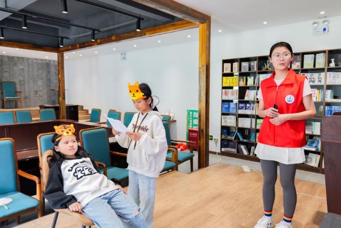 “話劇——用聲音與肢體表達美好”課程以練習話劇《老虎拔牙》為主。在練習的過程中,讓同學們感受表演的樂趣,以及如何用聲音與肢體在感知情感后來表達情感。