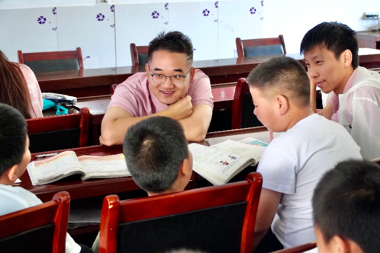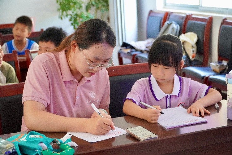 夏日的蟬鳴聲中,孩子們正為暑假作業而煩惱,實踐隊立即開辦“青禾學業加油站”。每天固定的課業輔導時間,“加油站”內氣氛熱烈而有序,孩子們簇擁著“小老師”,大膽提出積攢的疑問。面對拗口的古文背誦,隊員將艱深晦澀的文言文本轉化為富有節奏感的誦讀材料;講解數學方程時,通過等量代換等直觀教學方法,使抽象的數學符號具象化;英語單詞記憶則巧妙融入身邊事物,朗朗讀書聲飛出窗外,與傳來的廣播聲交織在一起,構成了一幅生動的鄉村教育圖景。