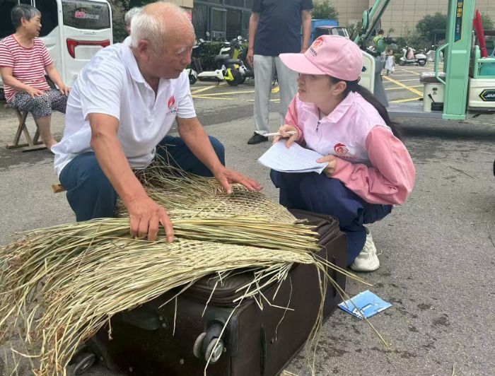 為深化對非遺文化的認識,促進民族文化交流交融,2025年8月14日,南京師范大學泰州學院“紅石榴”志愿團隊奔赴江蘇省徐州市新沂市星河灣開展了社會實踐。團隊成員張燁聚焦非遺蓑衣編織技藝,深入對話傳承人左佃玉,解鎖傳統手工藝里的非遺蓑衣編織密碼,助力非遺活態傳承。