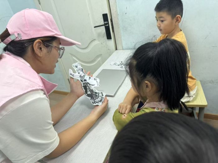 隨后,志愿隊組織手工制作活動。引導孩子們依據高山族服飾上典型的幾何紋、動物紋,發放彩色紙張、彩筆、剪刀、膠水等材料,鼓勵孩子們充分發揮想象力與創造力,制作簡易高山族頭飾和服飾模型。過程中,孩子們或專注勾勒圖案,或相互交流創意,將對文化的認知轉化為親手創作的成果 。