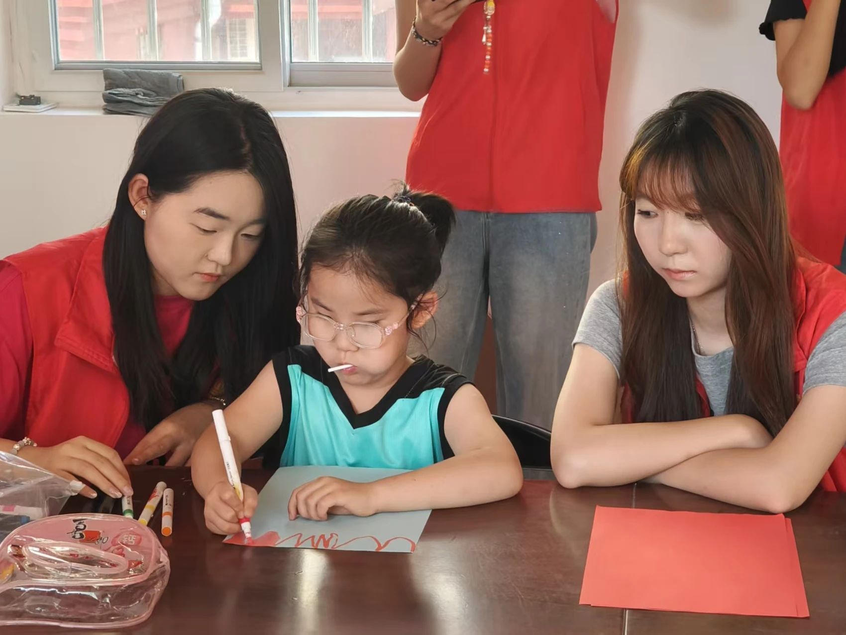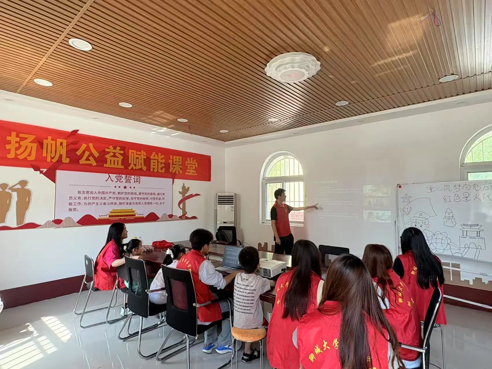 志愿者通過PPT將黨的艱苦奮斗歷程可視化、互動化呈現,讓黨史教育變得更直觀、更具吸引力,幫助小朋友們在沉浸式體驗中筑牢信仰根基。志愿者帶領孩子們進行繪畫創作,通過繪畫將抽象的紅色精神轉化為具象畫面,以藝術語言理解黨的奮斗歷程,讓紅色教育“看得見,摸得著”。