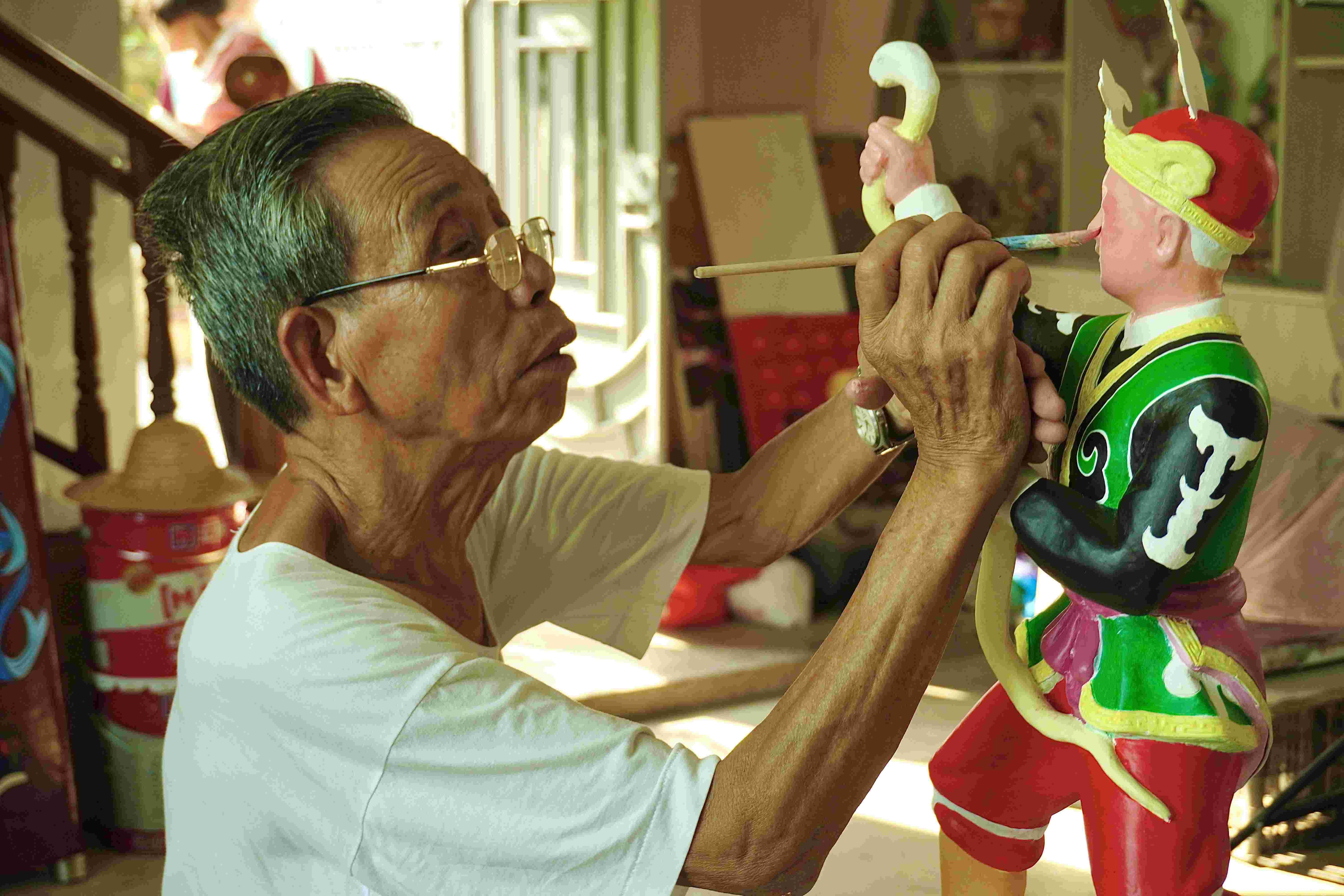 圖為捷勝非遺傳承人周貴彤老師正在完善泥塑