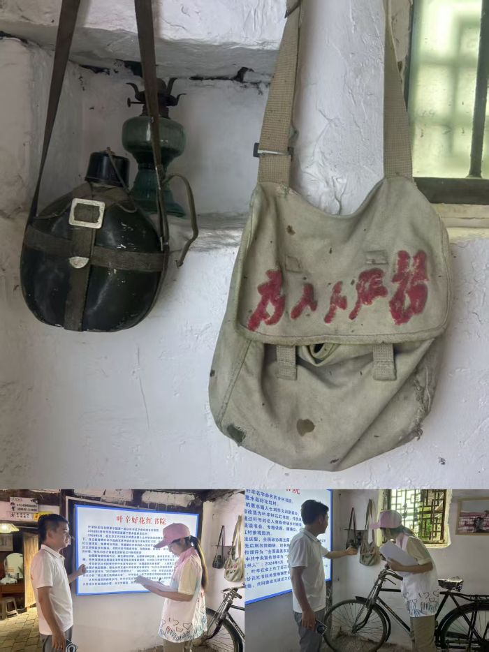 進(jìn)入好花紅書院后,貴州貴聯(lián)公益服務(wù)中心理事長(zhǎng)張新春圍繞“書院與民族文化傳承”展開介紹:2018年葉辛主席牽頭創(chuàng)辦書院時(shí),特意規(guī)劃“民族文化展示區(qū)”,旨在留存布依等少數(shù)民族文化印記。現(xiàn)場(chǎng)展示的葉辛主席使用過(guò)的“上海牌”帆布包、煤油燈、“永久牌”自行車等實(shí)物,均附有布依群眾當(dāng)年幫助維修、養(yǎng)護(hù)的文字說(shuō)明,見證了知青與布依群眾的深厚情誼。在書籍展示館,志愿隊(duì)組織學(xué)子開展《黔山聽語(yǔ)》分段朗讀活動(dòng),該書收錄了布依族“六月六”祭田、“三月三”對(duì)歌等民俗記述;同時(shí)陳列的苗族銀飾、布依楓香染樣品形成“多民族文化對(duì)話”,志愿隊(duì)成員還系統(tǒng)介紹了布依族“六月六”的節(jié)日詳情,是對(duì)民族精神的詮釋,幫助學(xué)子建立“各民族文化共生共榮”的認(rèn)知。