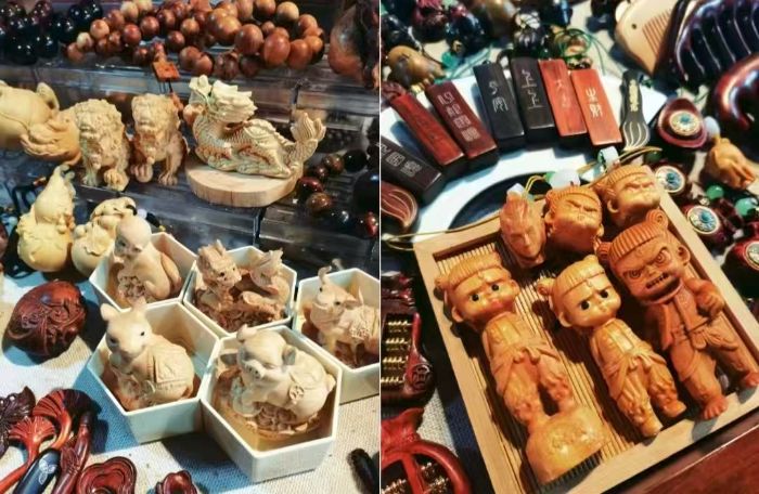 作品展示環節,萬老師重點解析《百鳥朝鳳》等作品的創作邏輯,志愿隊則借此契機設置“民族非遺小課堂”,通過展板、手冊等形式,介紹苗族銀飾鍛造、彝族漆器制作等少數民族非遺技藝的工藝流程,對比不同民族手工藝中“因材施藝”的共通智慧,讓公眾在了解根雕的同時,拓寬對少數民族非遺文化的認知。