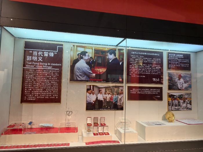雷鋒在鞍鋼工作的展區(qū),更是讓實踐團成員們駐足深思。泛黃的照片、詳實的文字,講述著雷鋒在鞍鋼積極工作、成長奉獻的故事。從童年苦難到成為機關(guān)工作模范,雷鋒精神在鞍鋼這片土地萌芽傳承,也讓“奉獻、敬業(yè)”的精神內(nèi)涵,與鞍鋼的奮斗基因深度融合。 “當代雷鋒”郭明義的展區(qū),展現(xiàn)了鞍鋼精神的傳承接力。郭明義幾十年如一日的奉獻讓雷鋒精神在新時代鞍鋼綻放新光彩,激勵著一代又一代鞍鋼人接續(xù)奮斗。