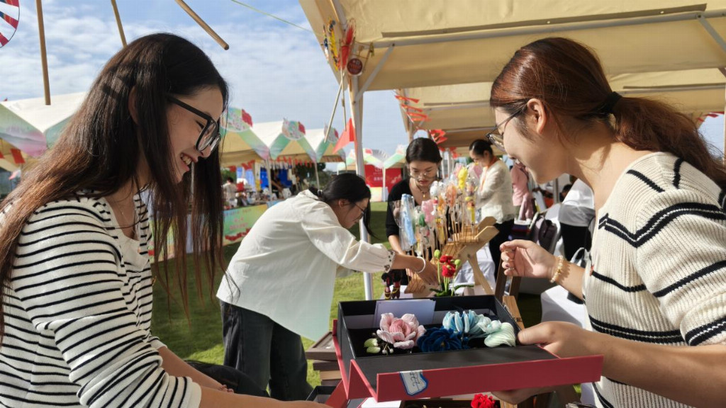 “多虧同學們幫忙,原本一個攤位要很久的準備工作,十幾分鐘就完成了!”一位從事手工編織的殘障創業者笑著說。團隊用高效協作與細致服務,為集市順利開市掃清障礙,讓殘障創業者的匠心作品得以更好地呈現在市民面前。
