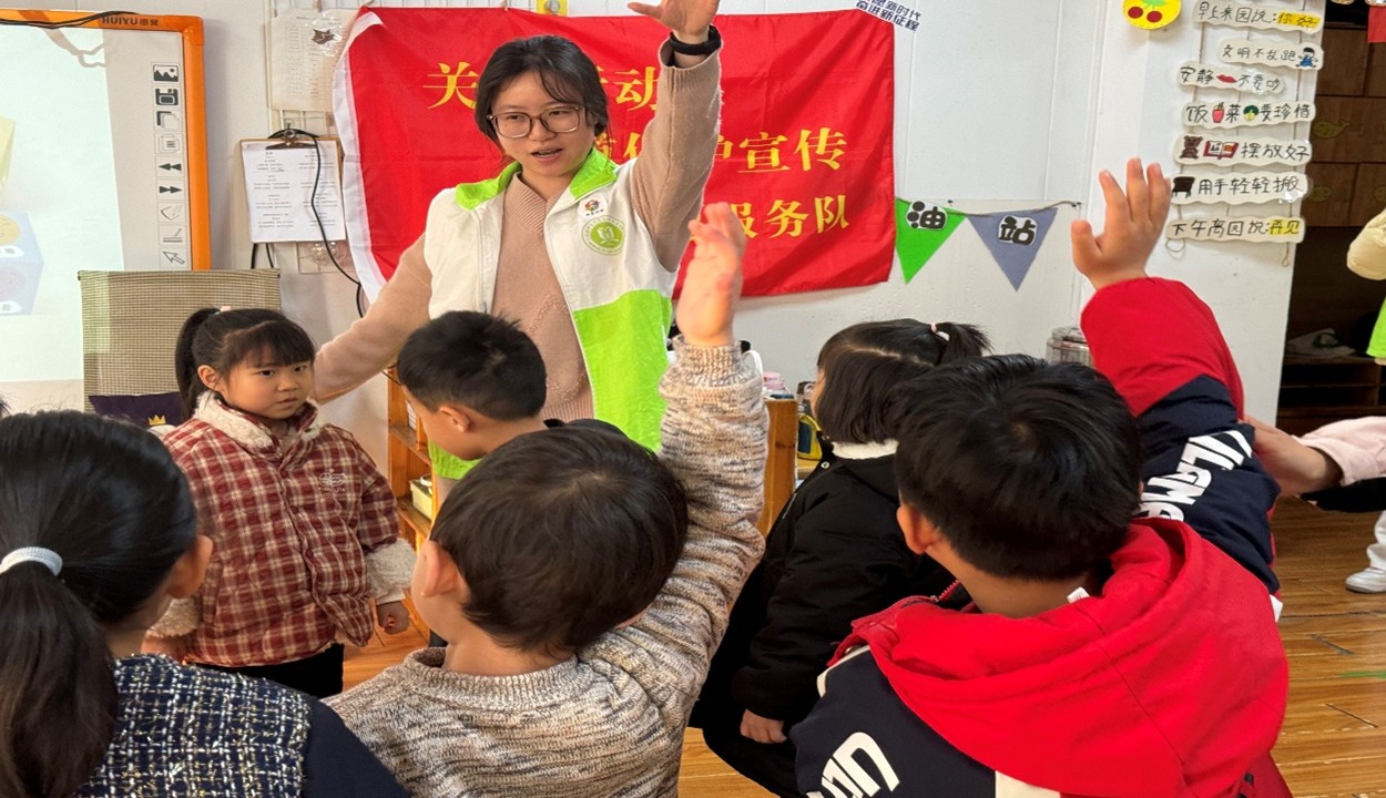 圖為志愿者提問幼兒園孩子們積極舉手回答。喬晨陽 供圖