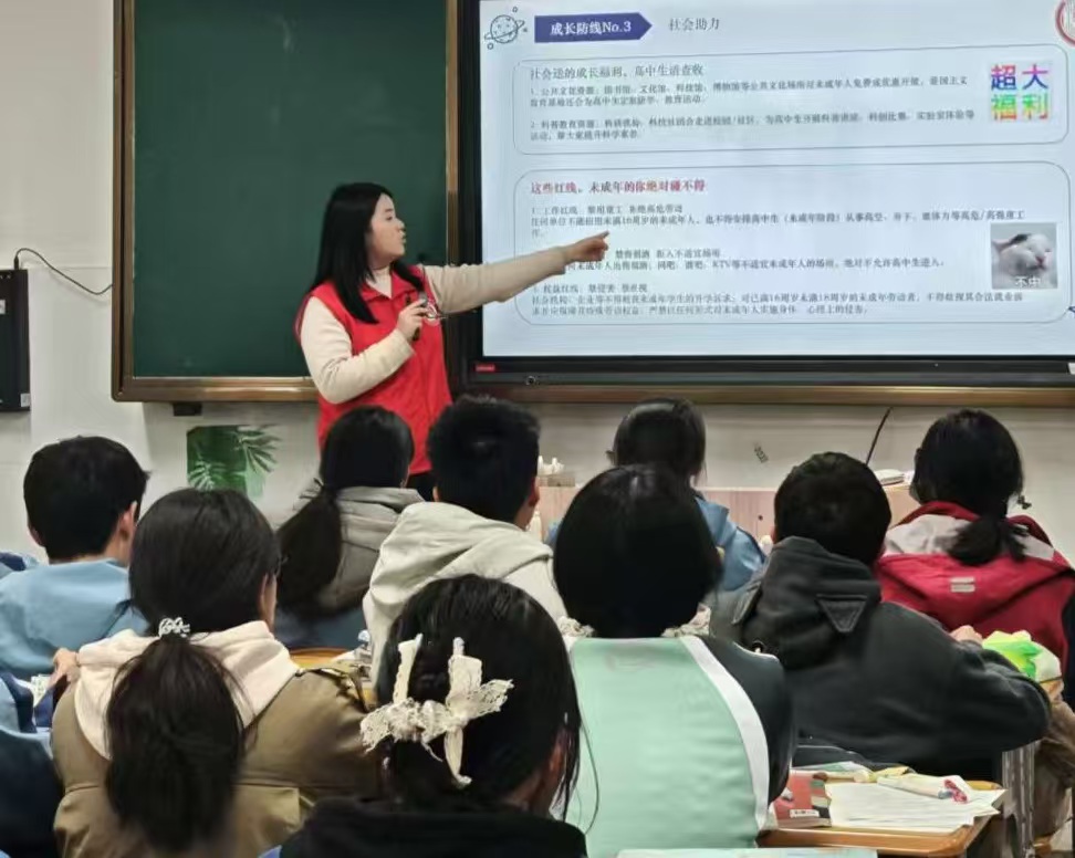 “同學們,你們知道法律是如何全方位保護我們的嗎?”宣講伊始,志愿者以新修訂的《未成年人保護法》為切入點,用生動形象的比喻,詳細解讀了家庭、學校、社會、網絡、政府、司法這“六大保護”體系。志愿者指出,這六大體系如同六面盾牌,共同構筑起守護未成年人健康成長的銅墻鐵壁。