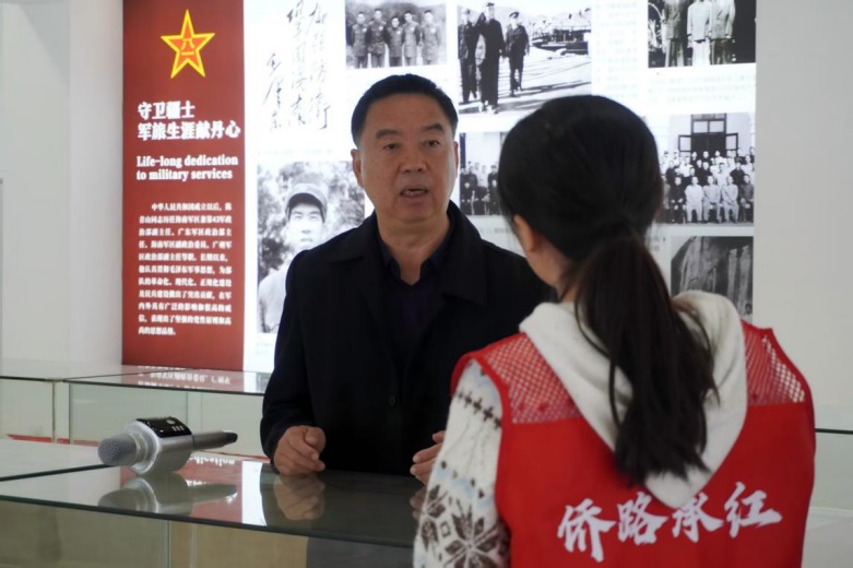 1月16日上午,實(shí)踐團(tuán)首站抵達(dá)陳青山將軍紀(jì)念館。團(tuán)隊(duì)成員首先對(duì)館長(zhǎng)進(jìn)行了深度訪談。館長(zhǎng)動(dòng)情地回憶起1994年與將軍的一面之緣,正是這份特殊的緣分,驅(qū)使他全心投入紀(jì)念館的建設(shè)與研究。接著,在館長(zhǎng)的引領(lǐng)與生動(dòng)講解下,團(tuán)隊(duì)依次參觀了“少年求生”“回國(guó)奮戰(zhàn)”“卸甲歸僑”“心存社稷”等展區(qū),系統(tǒng)梳理了將軍從馬來(lái)西亞歸國(guó)投身革命、征戰(zhàn)瓊崖到晚年心系桑梓的壯闊人生。