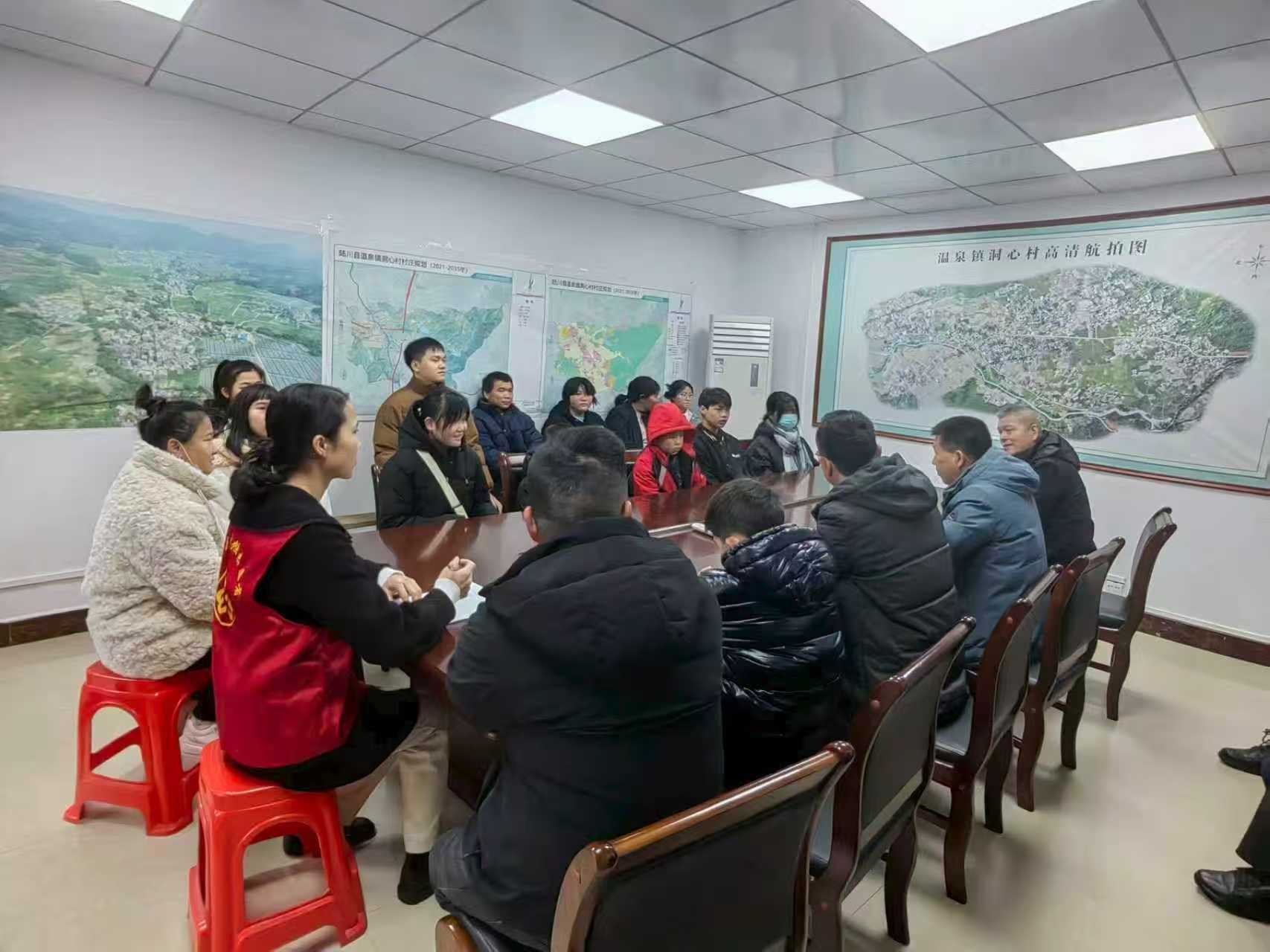 圖為實踐團隊與溫泉鎮(zhèn)政府干部開會。張小丫攝