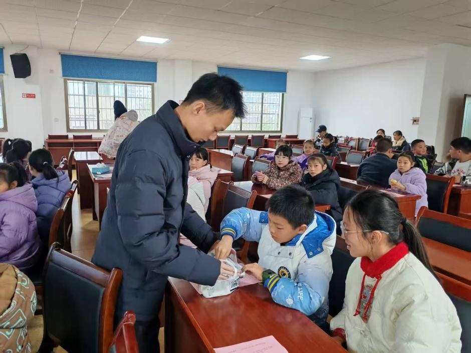 圖4 志愿者正為參與活動的孩子發放小禮品,現場互動溫馨,孩子們的喜悅都寫在臉上。