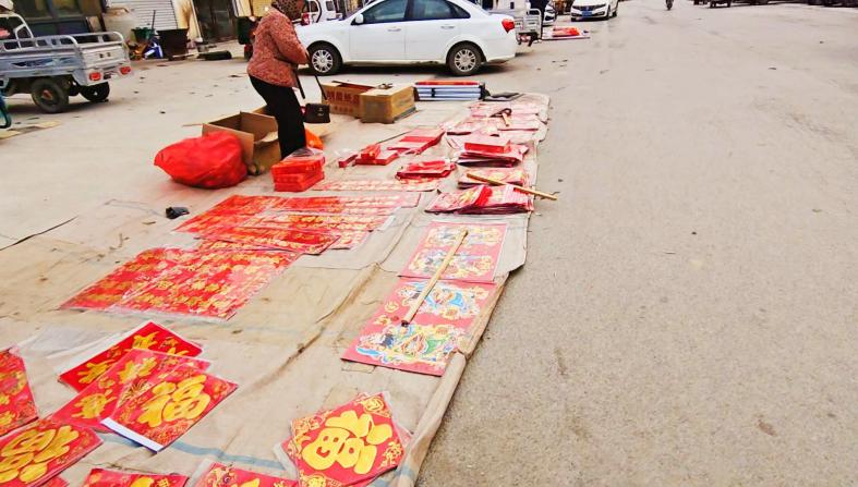 實踐隊員穿行于攤位之間,與多位攤主交談,聆聽他們關于年貨買賣與當?shù)亓曀椎恼鎸嵵v述。今年剛入行的中年攤主告訴隊員們,他目前已趕過六個集市,售賣年貨以成套春聯(lián)及散件為主。談及生意情況,他語氣淡然:“賣得不怎么樣。”另一位已連續(xù)經(jīng)營兩三年的大爺則表示,近年來春聯(lián)攤位激增,競爭愈發(fā)激烈,收入并不理想。當隊員們問及是否售賣“過門箋”時,大爺直言未曾賣過,并稱“這不是咱這兒的習俗”。在被問及若有攤位售賣此類產(chǎn)品是否會被接受時,大爺搖頭表示,當?shù)厝烁晳T遵循既有的節(jié)慶規(guī)矩,對新事物的接受度有限。