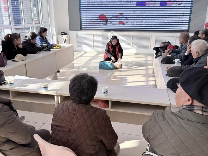 活動伊始,團隊成員從心搏驟停的識別切入,結合老年群體高發意外類型,以平實清晰的語言闡明及時施救的重要性。緊接著,團隊成員借助假人道具,分步驟演示心肺復蘇的完整流程,包括意識判斷、呼救方式、體位調整、胸外按壓及人工呼吸等環節,并邀請居民現場操作。部分居民在初次嘗試后存在按壓力度不足或位置偏移等問題,團隊成員針對此現象進行逐個糾正,通過反復練習幫助參與者形成規范的操作習慣,確保其正確掌握該項技能。隨后,宣講進入氣道異物梗阻處置環節。團隊成員針對不同情形,分別演示海姆立克急救法的自救與他救手法。現場居民在志愿者指導下逐一進行實操訓練,通過親身實踐掌握關鍵操作要領。部分居民在練習后表示,此類技能培訓對日常生活具有實際指導價值。