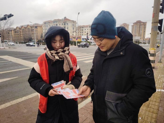 緊接著,宣傳團(tuán)成員轉(zhuǎn)赴田和街道田西社區(qū),在城市主干道旁的人行區(qū)域開展流動(dòng)宣傳。成員向過往行人發(fā)放急救手冊(cè),針對(duì)冬季高發(fā)的凍傷、滑倒摔傷等意外狀況,講解現(xiàn)場(chǎng)急救與處置要點(diǎn),旨在提升居民應(yīng)對(duì)季節(jié)性突發(fā)意外事件的實(shí)踐能力。