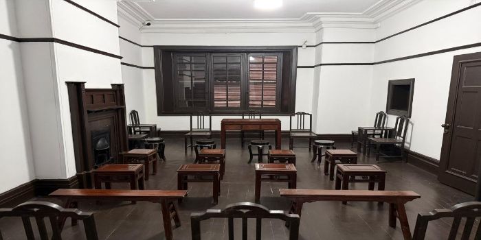 沿著木質樓梯上行,便是還原后的八七會議現場。站在這里,仿佛能聽見毛澤東同志“槍桿子里出政權”的著名論斷,能感受到代表們慷慨陳詞的熱烈氛圍——這場會議確立了土地革命和武裝反抗國民黨反動派的總方針,為中國革命指明了新方向。