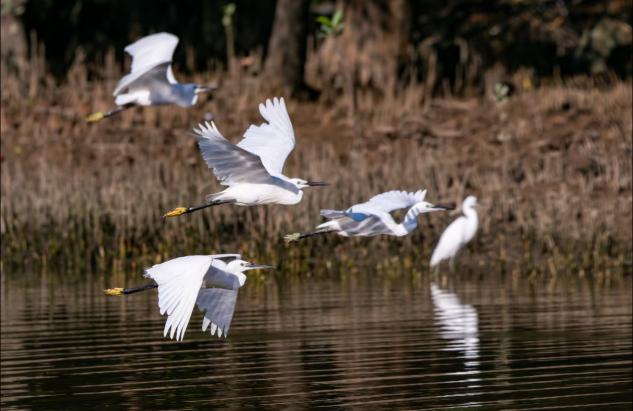 在濕地觀鳥臺,團隊通過望遠鏡與攝像機,專注追蹤白鷺的蹤跡。白鷺通體雪白的羽毛在暖陽下熠熠生輝,它們時而在蘆葦叢上停歇,時而振翅盤旋劃出優美弧線。隊員們通過對比不同區域的觀察數據發現:白鷺的活躍度與蘆葦覆蓋率、水質清澈度呈正相關。這一發現直觀印證了“物種生存狀態是生態環境的晴雨表”這一科學結論。作為國家二級保護動物,白鷺不僅為濕地增添了生機,更是濕地生態系統的“指示物種”。