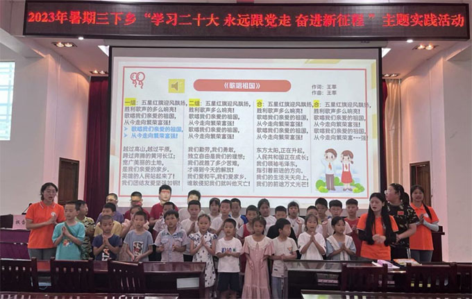 (通訊員蔣佩瑾 楊欣瑤 張琪秋怡)為積極響應(yīng)“學(xué)習(xí)二十大,永遠(yuǎn)跟黨走,奮進(jìn)新征程”的號(hào)召,7月9日,重慶幼兒師專“四葉草”黨史學(xué)習(xí)教育團(tuán)在云陽(yáng)縣紅獅鎮(zhèn)舉辦了“童心向黨藝綻放 歌唱祖國(guó)頌黨恩”的音樂教育課堂。課程以學(xué)習(xí)歌曲《歌唱祖國(guó)》為主線,采用寓教于樂的活動(dòng)方式,讓同學(xué)們?cè)谝魳分绣塾巫鎳?guó)的大好河山,在歌詞中祝福祖國(guó)的繁榮昌盛,實(shí)現(xiàn)“美學(xué)育人”的教育理念。