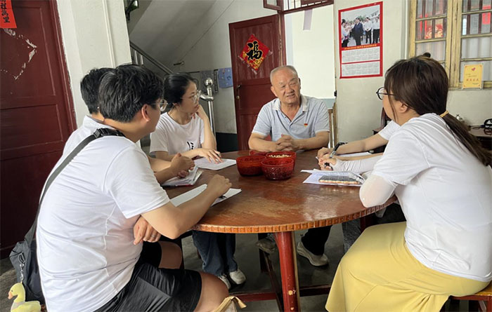 圖為實踐隊隊員在潭頭社區聆聽孫觀發講述《習近平總書記來我家的故事》,感受習近平總書記對老區人民的深情大愛。