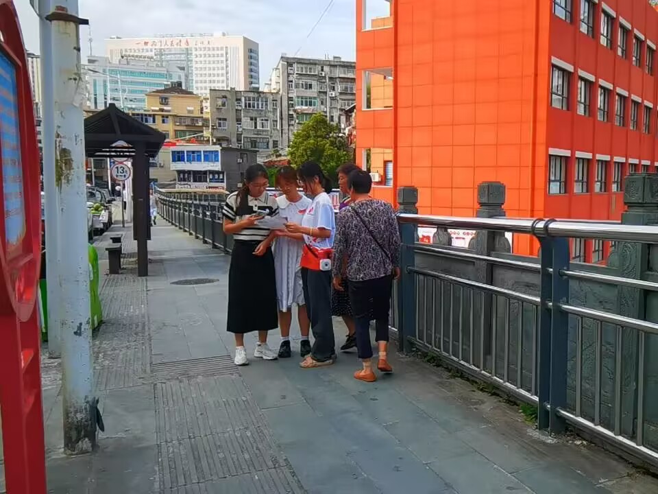 圖為實踐隊員向群眾發放宣傳單。今日大學生網通訊員許可攝
