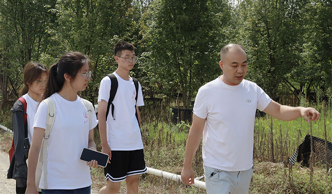 首先村干部帶領實踐隊員們參觀了苗木種植基地并且詳細介紹了苗木基地的產業扶貧項目。泊頭村苗木種植基地采取“企業+合作社+農戶”的模式進行合作,碧桂園出資金,出技術,出苗木,并負責苗木銷售,村合作社提供土地并且優先雇傭貧困戶進行種植。同時會推進“包產到戶”模式,讓無法到基地種植的貧困戶只需要出一小部分資金就可以在家門口種植苗木,碧桂園同樣提供苗木,并上門指導和收購,實現了精準扶貧。