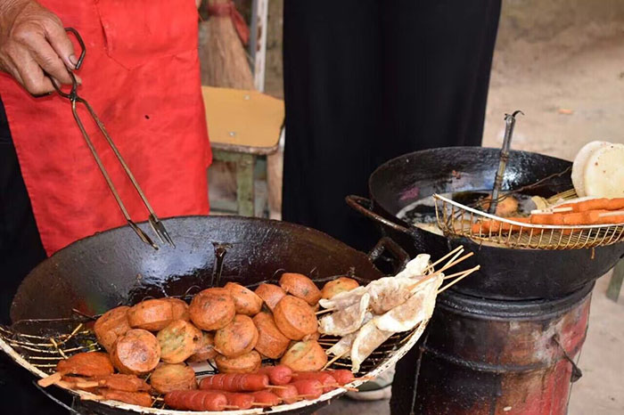 實踐團成員對村民們進行了有關“三下鄉”社會實踐活動的宣講,讓文化走入農村生產生活,服務于基層,傳承優秀鄉土特色,宣傳當地人文風貌。聽當地老人分享日常、講民俗。擺地攤奶奶同我們“擺談”了自家制作的蔬菜干,清脆爽口,開胃下飯;熱情攤主讓我們品嘗現炸“油香”,金黃酥脆,購買顧客絡繹不絕;門店嬢嬢手工制作當地特色“麥面羹”,餐桌上的叔叔直豎大拇指;梯坎上排座的老爺爺沉默寡言,但絲毫不影響來往顧客都來他這兒購買杵豆的農具…