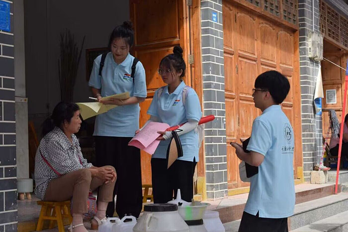 7月16日上午8:30,重慶外語外事學院音樂學院組建的“青歌筑夢”活動實踐團隊員來到南腰界鎮開展考察調研,探訪趕集市場的生產生活、森林防火、防溺水、防網絡詐騙等安全宣傳,以及四史學習、助農電商的知識宣講等。