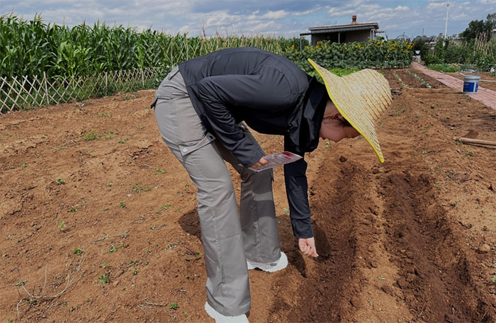 圖為團(tuán)隊(duì)成員親自體驗(yàn)播種的過(guò)程。劉家如 攝