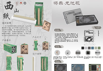 【實踐隊員莊美婷、郭宇煖、鄭宇欣設計的西山紙包裝和龍池硯】