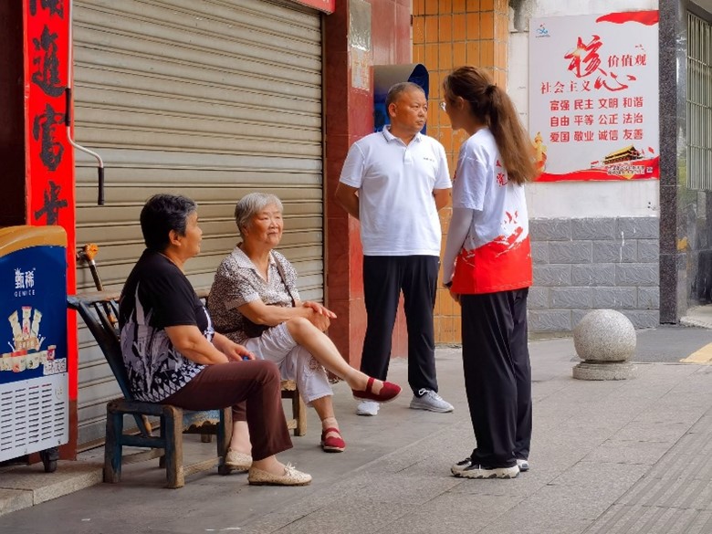 參觀結(jié)束后實(shí)踐隊(duì)員在街邊與的老年人展開了親切交流。同時(shí)也采訪了幾位老黨員。前輩們向?qū)嵺`隊(duì)員們分享了過(guò)去的艱苦生活以及他們老一輩人對(duì)革命烈士的感觸。隊(duì)員們從這段簡(jiǎn)短的對(duì)話交流中學(xué)習(xí)到了許多生活經(jīng)驗(yàn)。