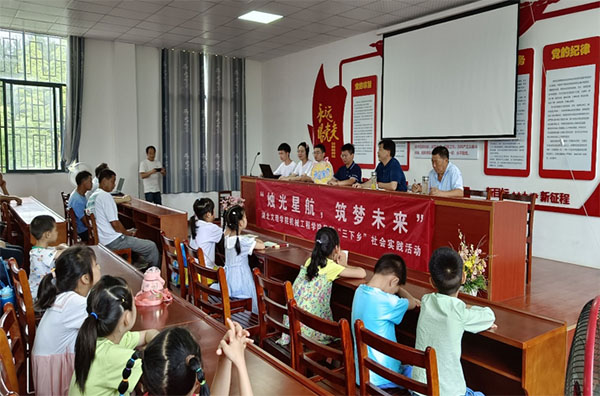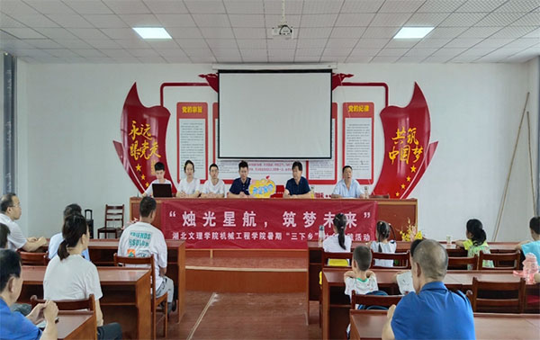 接著,由湖北文理學院趙老師致詞,趙老師首先感謝了村兩委的大力支持和家長們的信任,然后對全體支教隊員提出三點希望:一是希望支教隊員能夠秉承“淡泊明志,寧靜致遠”的校訓精神,用心用情講好每一堂課,陪伴孩子度過一個愉快而充實的假期。二是教學相長,在支教中,提高教與學的能力。三是依托太陽寨紅色教育基地的獨特優勢,講好紅色故事,重走紅色路,賡續紅色血脈。
