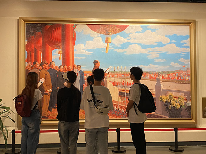 參觀結束后我們在新中國成立油畫墻旁久久駐足,仰望著毛主席的畫像,在心中回憶著百年來的黨的事跡,立下了要繼續學習黨的歷史,傳承紅色精神信念的理想目標。