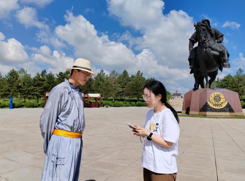 除成陵這一主要調研地之外,團隊成員還進入當地圖書館、公園、文化廣場以及牧民家中,從不同年齡、不同民族的居民口中深入了解成吉思汗祭拜儀式與祭祀文化。這些身份、民族各不相同的訪談對象達成共識:身處成陵這一愛國主義教育基地以及周邊浸潤了黃河文化的文娛場所中,更有助于每個人增進文化認同、堅定文化自信,推動鑄牢中華民族共同體意識。