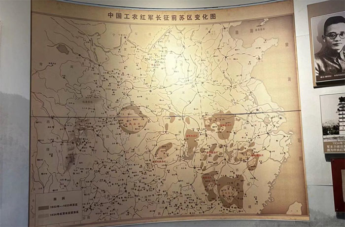 圖為中國工農(nóng)紅軍長征前蘇區(qū)變化圖