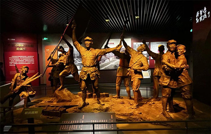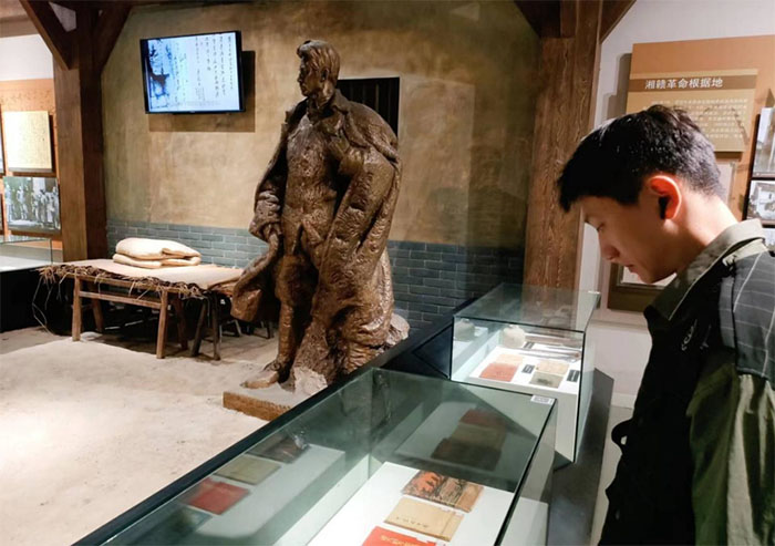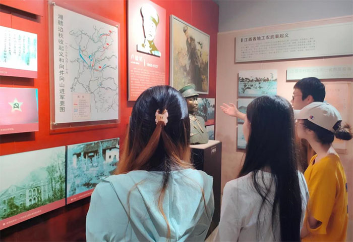 黨魂軍魂開拓實踐團成員前往井岡山革命博物館,在“紅軍洞”、“八角樓的燈光”等19個展廳的一座座栩栩如生的雕塑、一封封泛黃的信件、一把把的斑駁老槍等文物文獻資料展覽與聲光電融合中的電子投影生動傳神講述了中國共產(chǎn)黨是如何點燃中國革命的星星之火、為有犧牲多壯志,敢叫日月?lián)Q新天的魄力,體會井岡山精神中的堅定信念、艱苦奮斗的力量,滿墻的革命文物仿佛在述說著黨領(lǐng)導人民不畏強敵、不懼艱難的革命歷史,井岡山斗爭的偉大實踐對中國革命道路的探索和抉擇,黨和人民軍隊的成長與革新。南昌大學教職工薛之昕、重慶幼兒師范高等專科學校校團委何春沆老師從當下紅色基因的傳承與賡續(xù)、紅色文化資源保護開發(fā)與利用、黨魂軍魂與大學生融入新時代高校紅色基因價值進行深入探討,一同回顧著那一段段風起云涌的崢嶸歲月、感悟革命先烈偉大的革命精神、繼承革命先輩的優(yōu)良傳統(tǒng),實現(xiàn)中華民族偉大復興的中國夢。