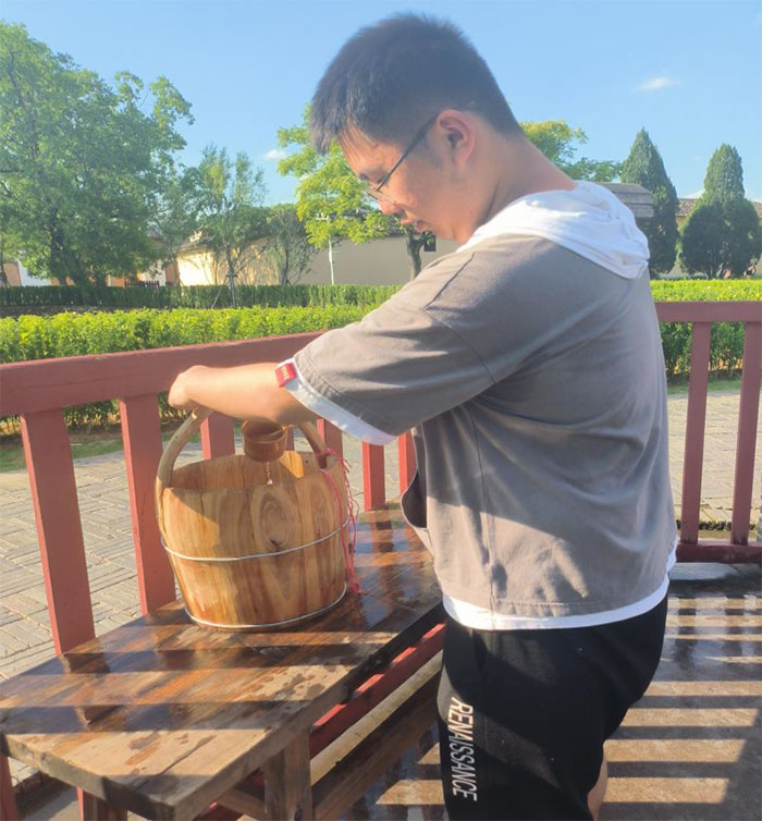 圖為實踐團成員從紅井打水后領(lǐng)悟“吃水不忘挖井人”的含義