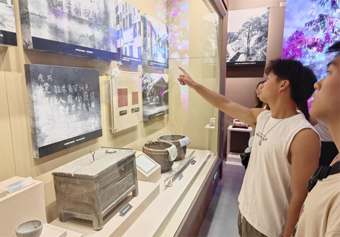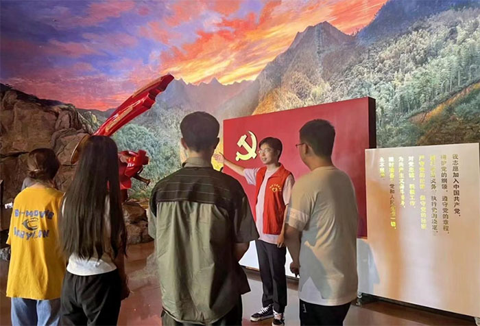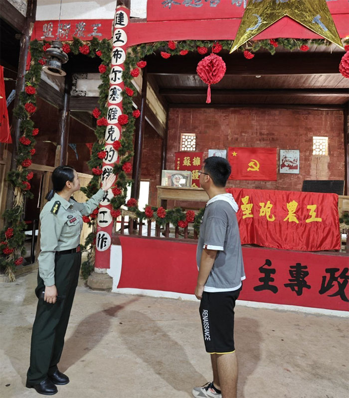 圖為志愿者為實踐團成員講解血與火的革命歷史