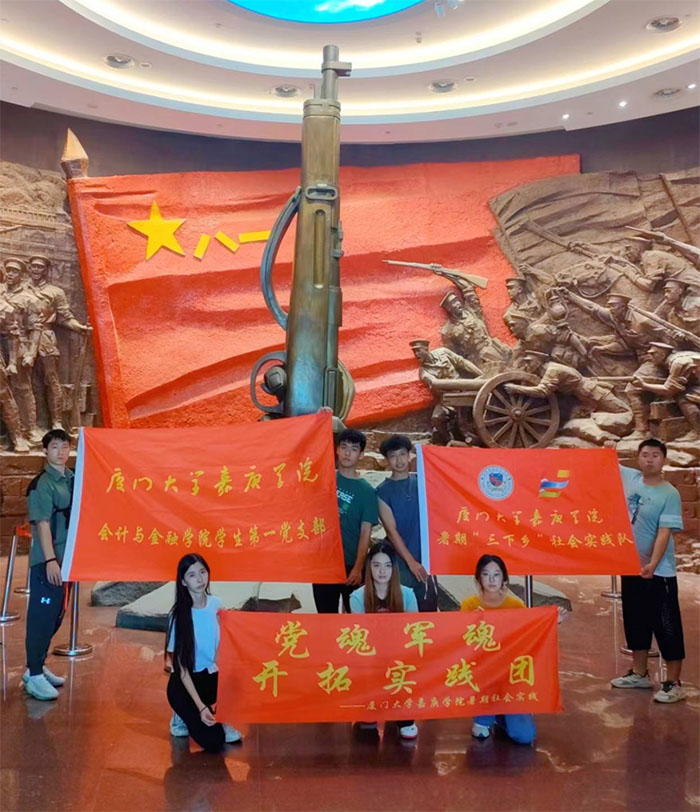 為了賡續(xù)紅色血脈、傳承中華軍魂,建軍96周年之際,廈門大學嘉庚學院黨魂軍魂開拓實踐團以“賡續(xù)軍魂精神,探索強軍之路”為主題,于7月8日至7月13日開展瑞金、井岡山、南昌三市的紅色研學宣講走訪調(diào)研活動,力求以實際行動踐行黨的二十大精神,以身臨其境傳承偉大紅色軍魂。