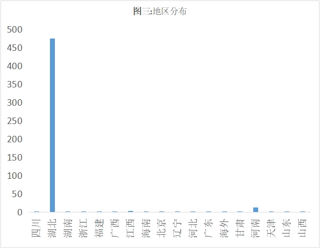 此次調(diào)查對(duì)象的地區(qū)分布結(jié)構(gòu)圖如圖三所示,其中湖北人數(shù)占比較高,其原因可能是團(tuán)隊(duì)成員主要在線下發(fā)放問卷,以湖北地區(qū)為主。但是此次問卷填寫者分布分布較為廣泛,所以此次調(diào)查結(jié)果具有一定的可信性。