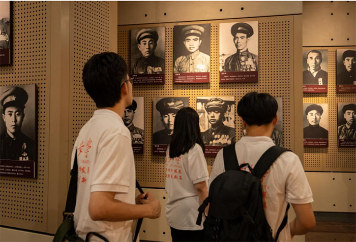 為紀(jì)念遼沈戰(zhàn)役勝利40周年,遼沈戰(zhàn)役紀(jì)念館于1988年在錦州烈士陵園內(nèi)正式落成。7月25日上午,實(shí)踐隊(duì)來到紀(jì)念館內(nèi),一入園區(qū)就被道路兩側(cè)刻有數(shù)萬名東北解放戰(zhàn)爭革命烈士姓名的紀(jì)念碑所吸引。紀(jì)念碑前方屹立著東北人民解放軍炮兵司令員朱瑞的塑像,他是解放戰(zhàn)爭期間我方犧牲的最高將領(lǐng)。東北解放戰(zhàn)爭的勝利為新中國成立作出重大貢獻(xiàn),解放戰(zhàn)爭革命烈士永垂不朽。