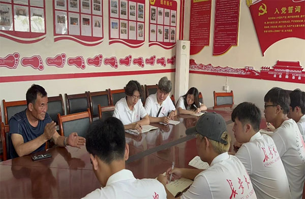 圖為南溝村村委會副主任張忠與實(shí)踐隊(duì)員開展座談會