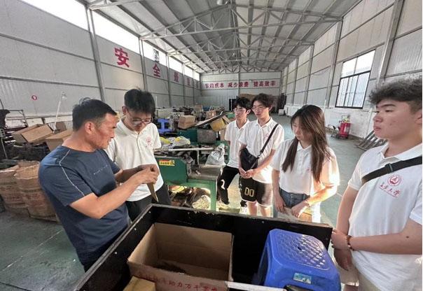 圖為張延剛帶領(lǐng)實(shí)踐隊(duì)員參觀蘋果產(chǎn)業(yè)工廠