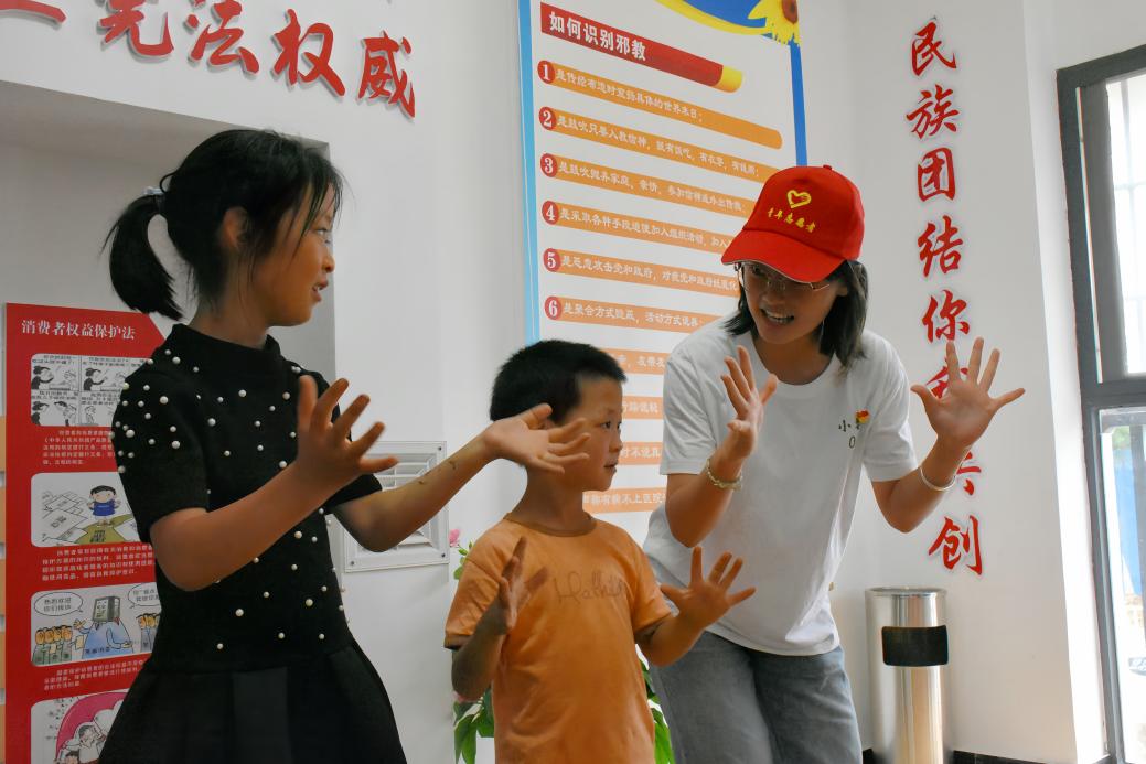 圖為暑期社會實踐團參加愛心托管班的開班儀式