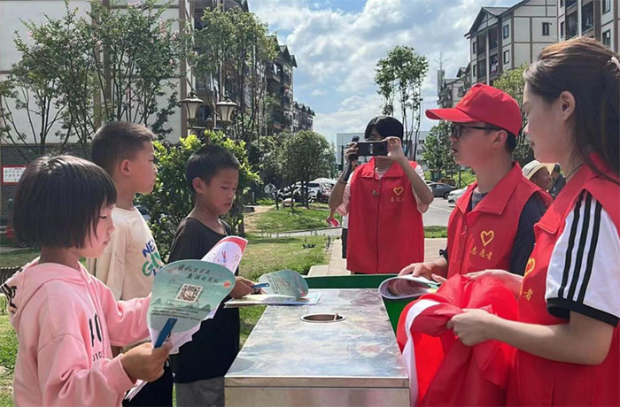 其次是向社區里的孩子們傳達寄語。兒童的健康成長是社會發展的重要保障,在《未成年人保護法》的護航下,仍有很多孩子并不知道怎么維護自己的權益,活動人員們親切詢問了孩子們是否存在剝奪受教育權、被家暴等行為,在確認孩子們權利未受影響的前提下,普及《未成年人保護法》的相關知識,同時向他們列舉了針對兒童的經典騙局,提高防騙意識,希望他們即使是在在孤注無援的情況下,也可以依靠自己去維護自己的合法權益,遠離詐騙,共創安寧社會。