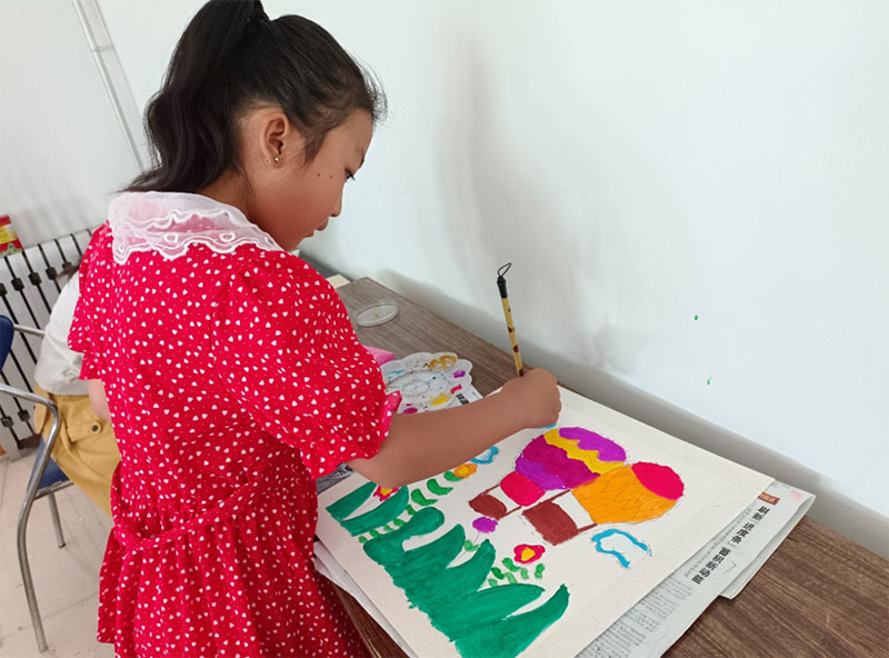圖為小孩子在學(xué)習(xí)農(nóng)民畫