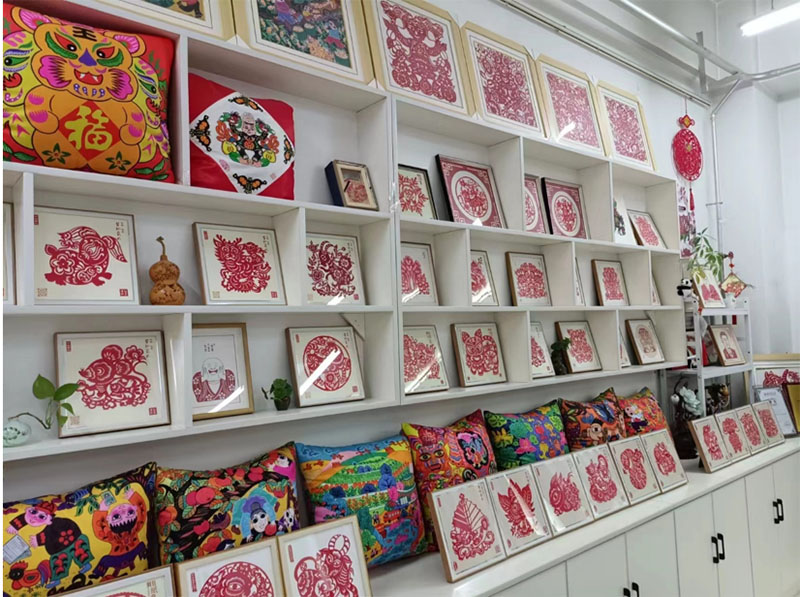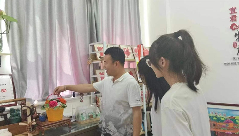 在手工藝傳承人郭華老師的帶領(lǐng)下,實(shí)踐團(tuán)成員參觀了剪紙、農(nóng)民畫、刺繡等傳統(tǒng)手工藝作品展。郭老師擅長剪紙和農(nóng)民畫,通過他對剪紙作品的介紹,成員們了解到了民間剪紙的特點(diǎn)以及相關(guān)知識。剪紙是中國民間藝術(shù)的瑰寶,具有較高的藝術(shù)價(jià)值,此次活動,實(shí)踐團(tuán)成員都深刻體會到了傳統(tǒng)文化傳承的重要性。如今,宜君縣也推出了很多文創(chuàng)產(chǎn)品,如剪紙圖案的鑰匙扣,農(nóng)民畫雨傘、靠枕等。這不僅是對文化的傳承,也帶動了當(dāng)?shù)氐慕?jīng)濟(jì)發(fā)展。