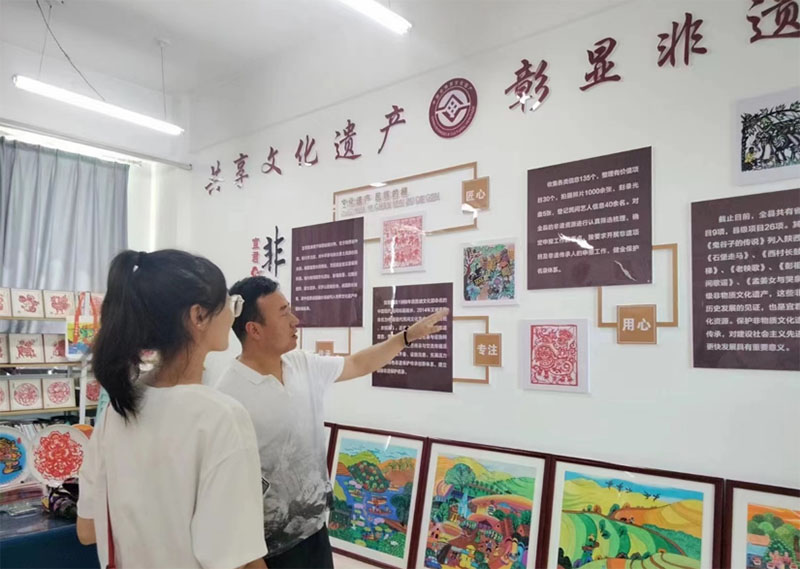 圖為郭華老師向?qū)嵺`團(tuán)講述宜君非遺文化