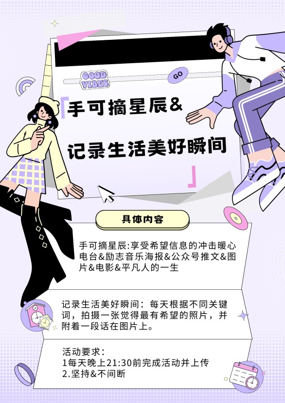 訓練營負責人通過每天定時分享生活中的美好片段和暖心視頻,鼓勵留守兒童以積極樂觀的心態面對每一天,促進他們實現自我和諧。同時每周以群打卡的形式開展不同主題的活動,如“三件好事”、“記錄生活美好瞬間”以樂觀希望為主題提升兒童的積極思維習慣;“關注自我品格優勢及實踐”、“小豆芽成長記”以自我效能和韌性為主題提升兒童面對挫折的抗壓能力、自我疏導和自我認可的心態,切實提高留守兒童的自我和諧水平和幸福感。