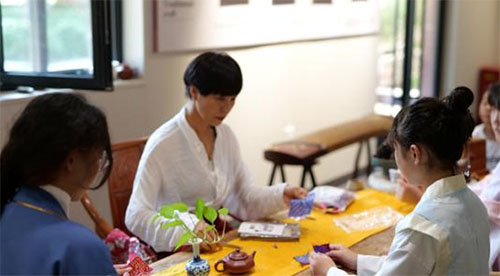 (通訊員:劉藝涵)8月13日,達然書院第二屆“清境入善”學員扇面書畫展在保定市南北非遺博物館舉行,精彩的書畫作品展覽之外,還為游客開放了云錦手工體驗,游客們在趣味中體會了云錦大師周雙喜的精美技藝。